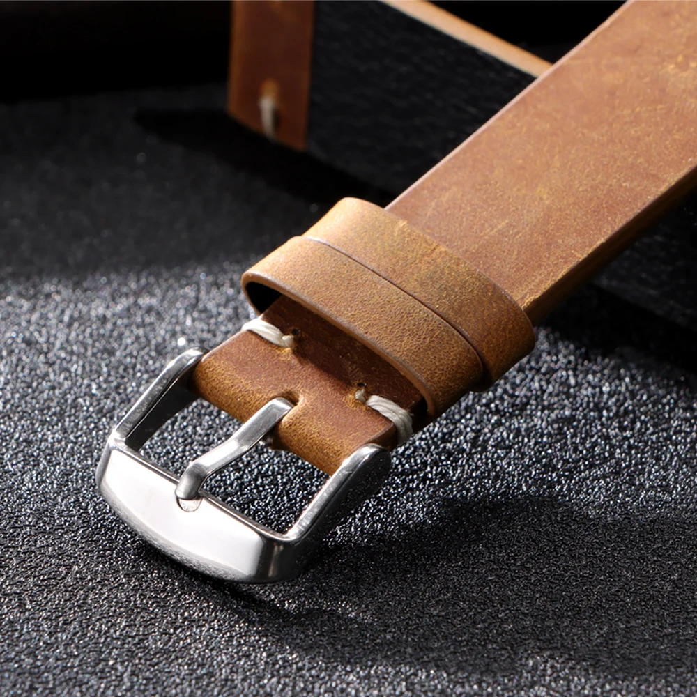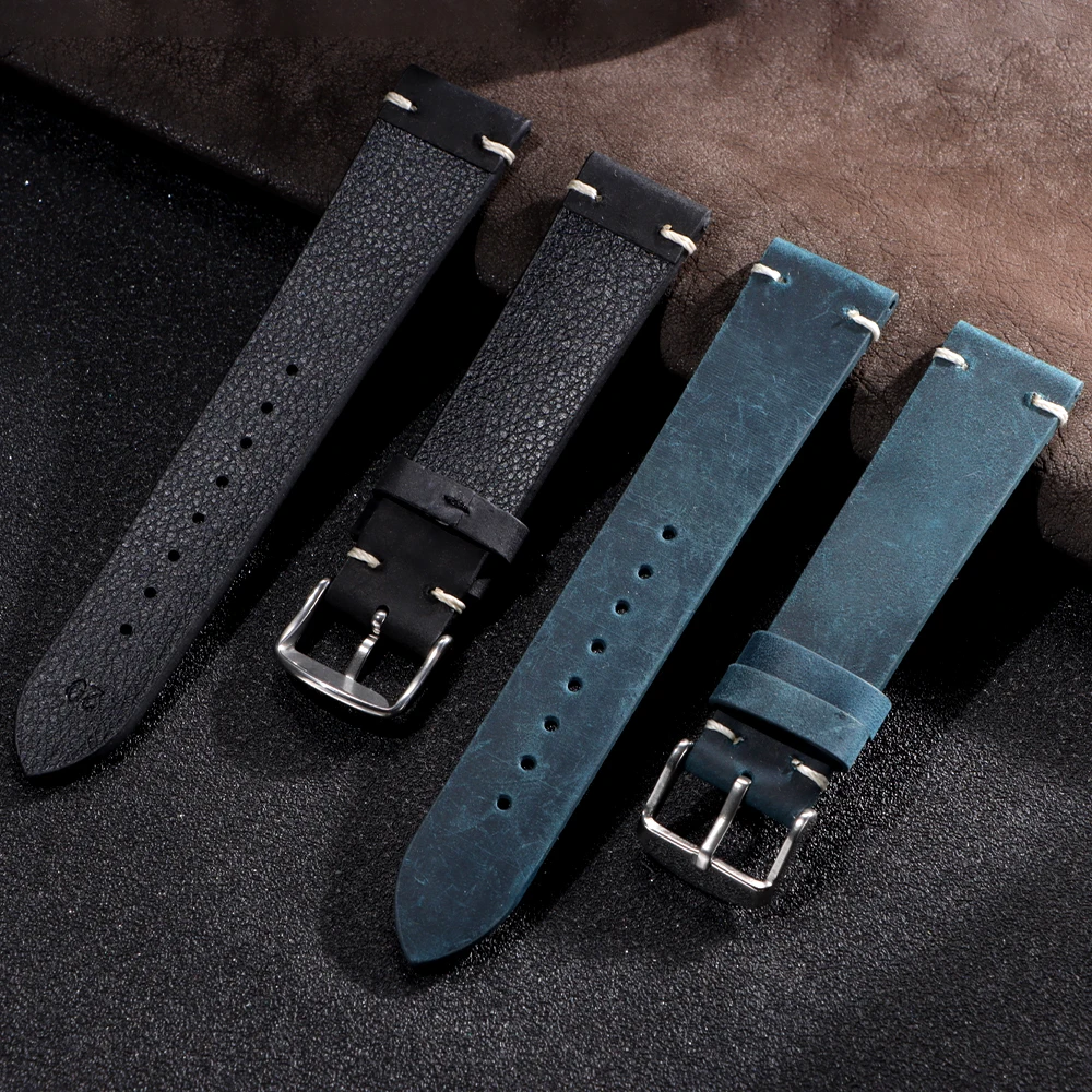 Vintage Oil Wax Watch Band Handmade Stitching Cowhide Strap for Omega for Seiko Smartwatch Wristband 18mm 20mm 21mm 22mm 24mm