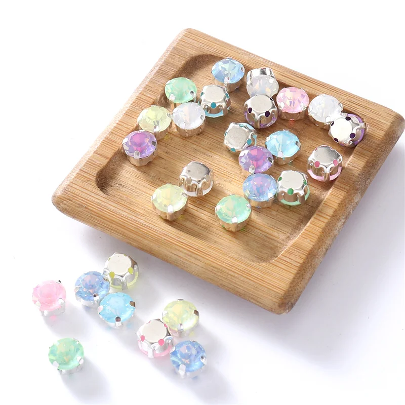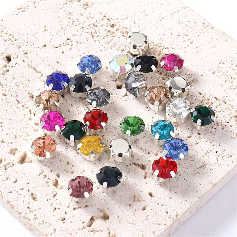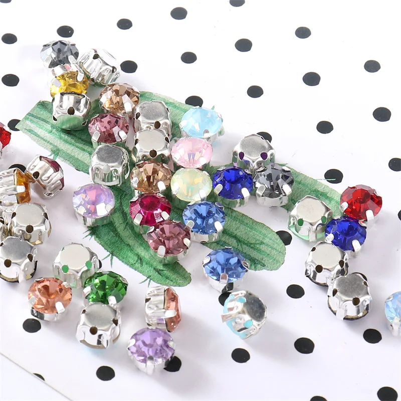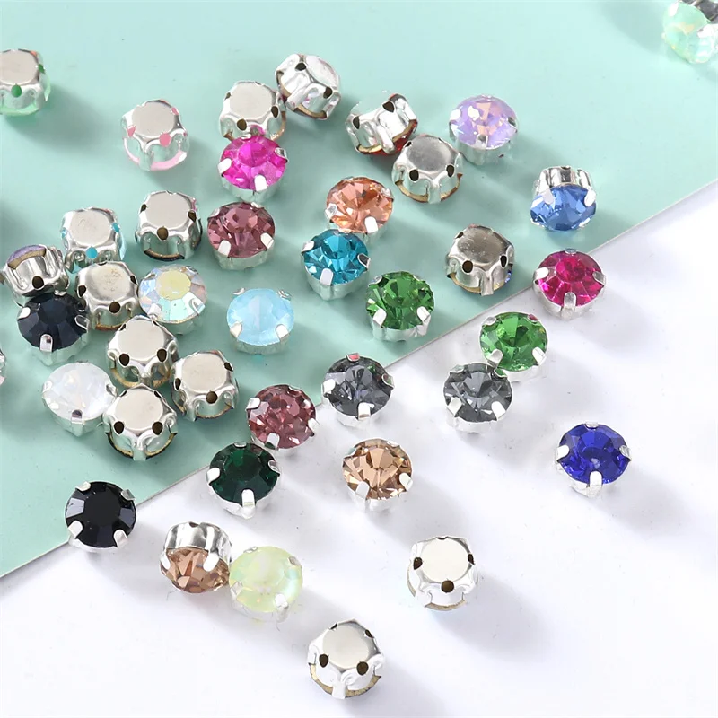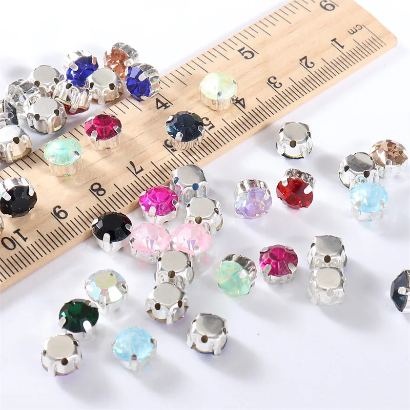 4mm-8mm Glitter Glass Sewing Rhinestones with Sliver Base Round Crystal Strass stones for diamond Jewellery clothes diy