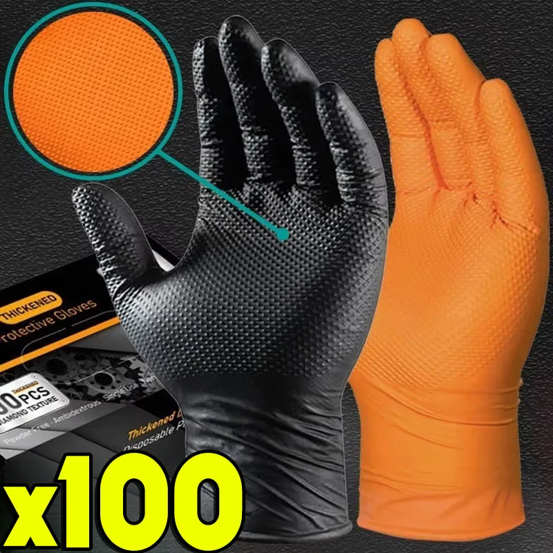Heavy Duty Nitrile Gloves 8Mil Extra Thick Mechanic Industrial Disposable Glove with Textured Grip Antislip Safety Work Gloves
