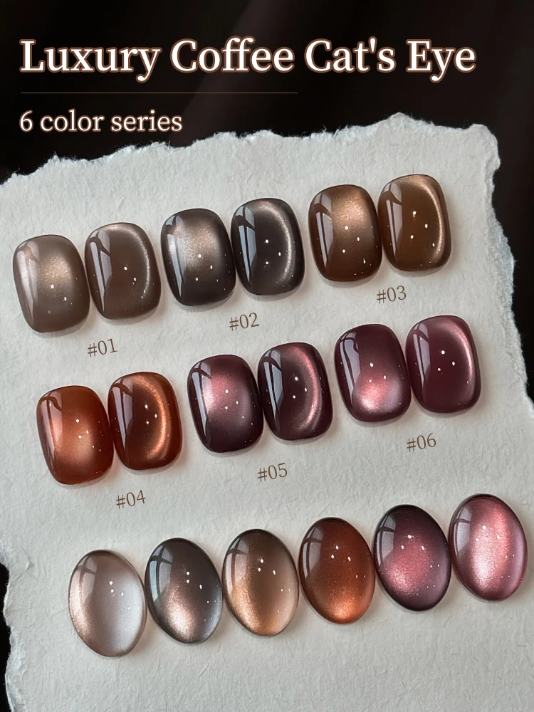 15ml 6Colors Luxury Coffee Cat's Eye Nail Gel Polish Set with Soak Off UVLED Cat Eye Gel Polish Manicure Nail Art Kit