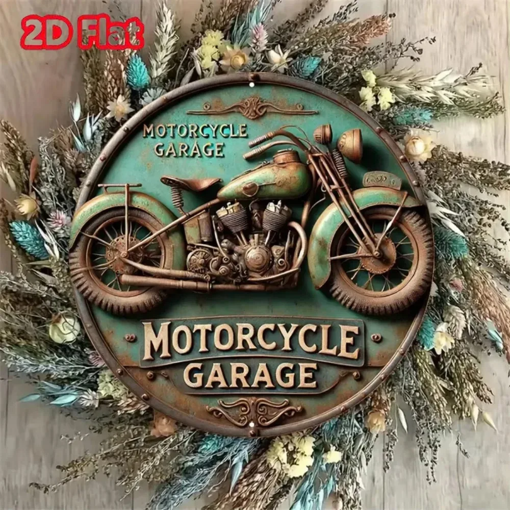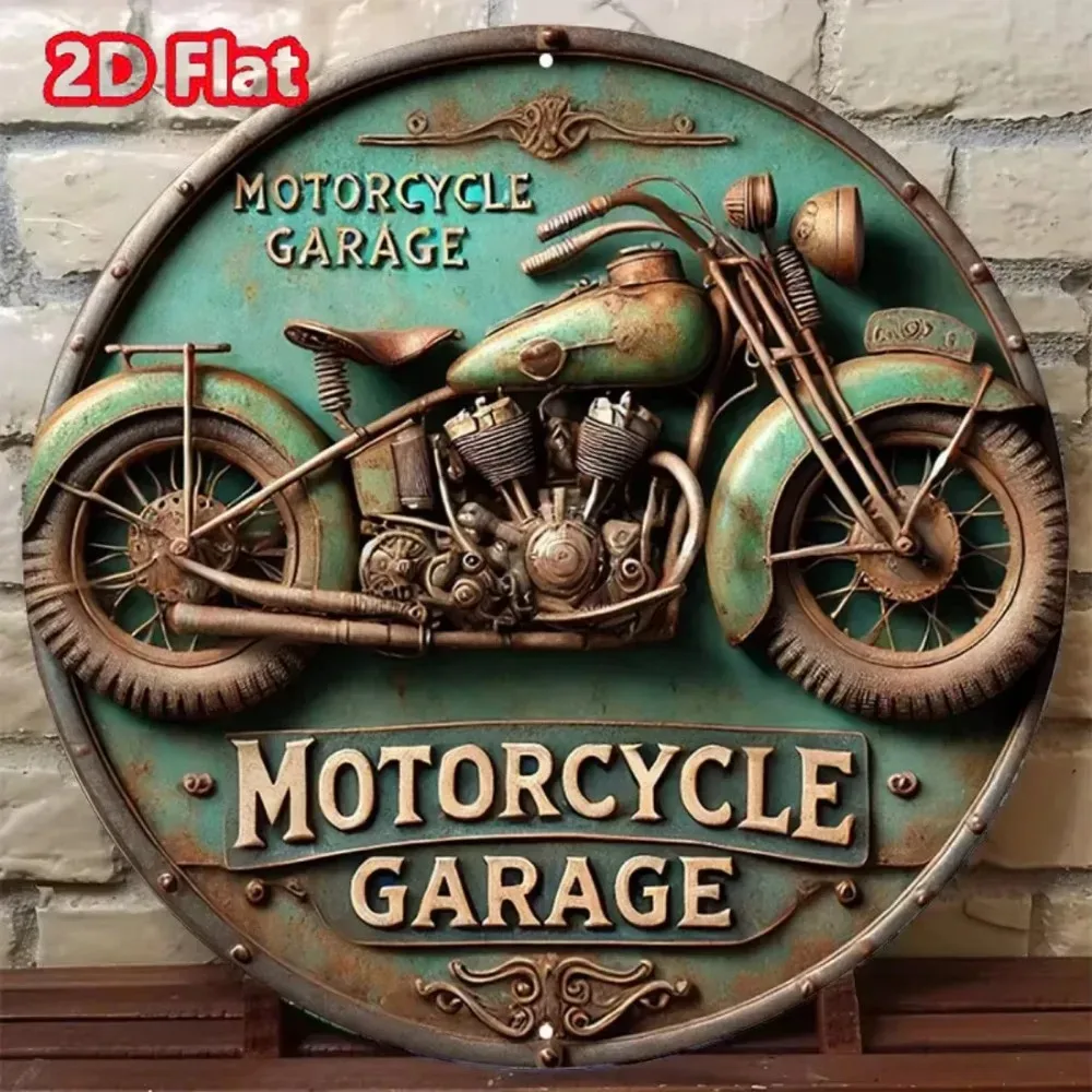 2D Vintage Round Aluminum Sign - Retro Metal Tin Sign - Motorcycle Rustic Metal Wall Art ,Room Decor Gift For Motorcycle