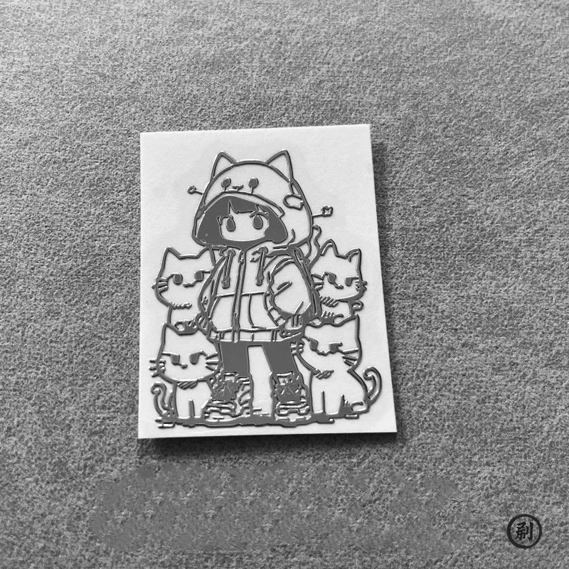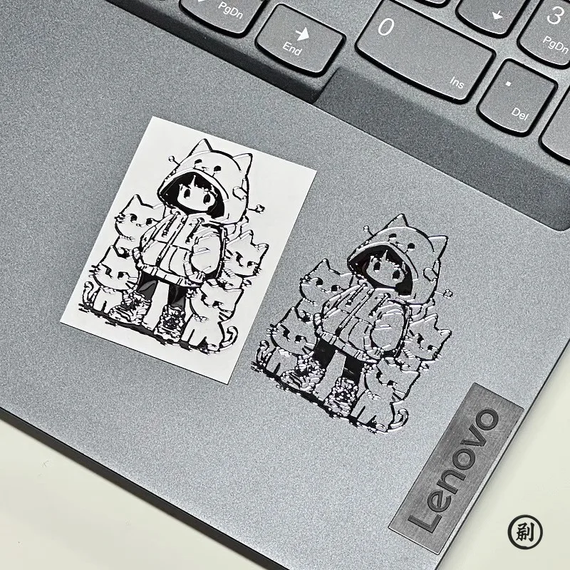 Elevate Your Style with Waterproof 3D Metal Stickers Featuring Girl and Cat Cartoon Characters - Elevate Your Style