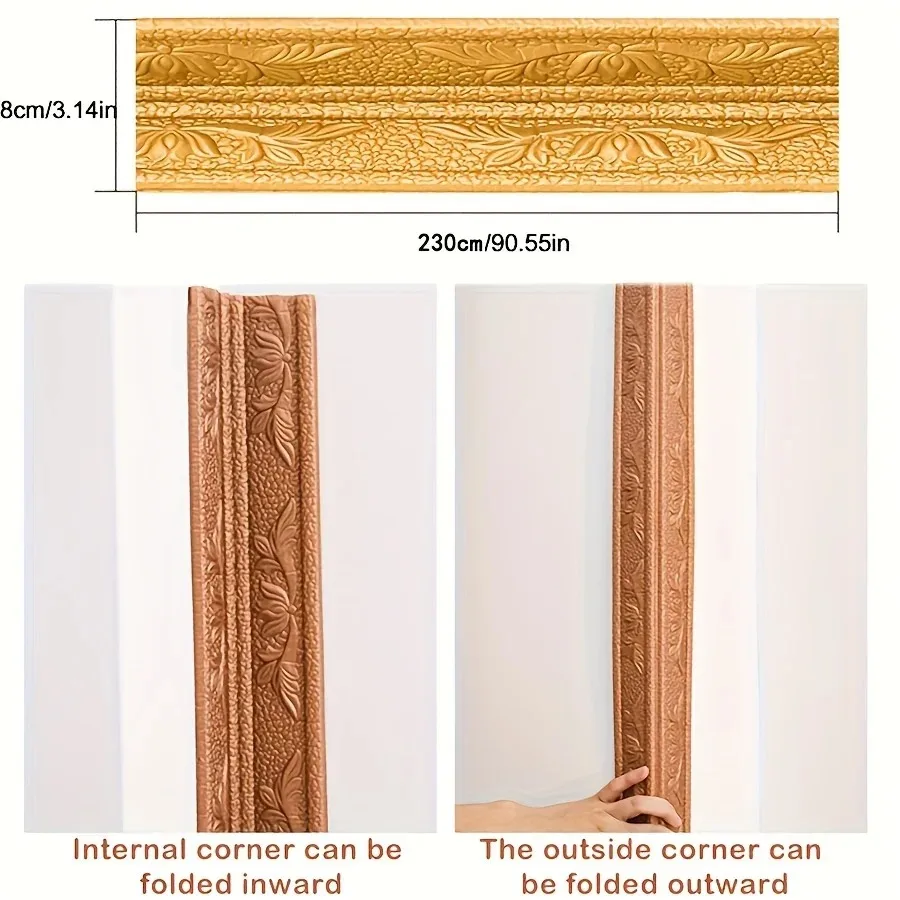 230cm Foam Wall Edge Strip Stickers Can be folded in half Self-Adhesive Waterproof Baseboard Corner Waist Line Sticker HomeDecor