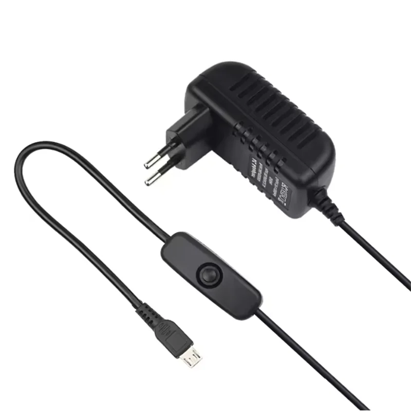 5V 3A Raspberry Pi 3B+ 3B Power Supply with Switch Button Power Adapter Micro USB Port for Pi Zero 2 W Orange Pi Zero 3 LTS