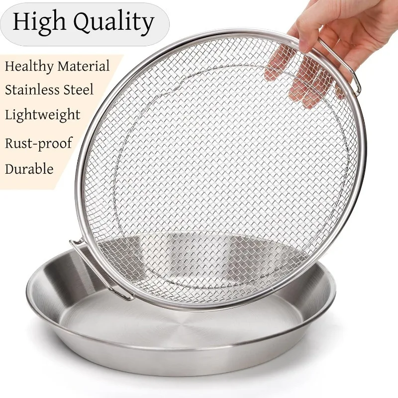 Polished Stainless Steel Oil Filter Tray, Reusable Round Mesh Basket for Frying/Grilling,All-Season Kitchen Strainer with Handle