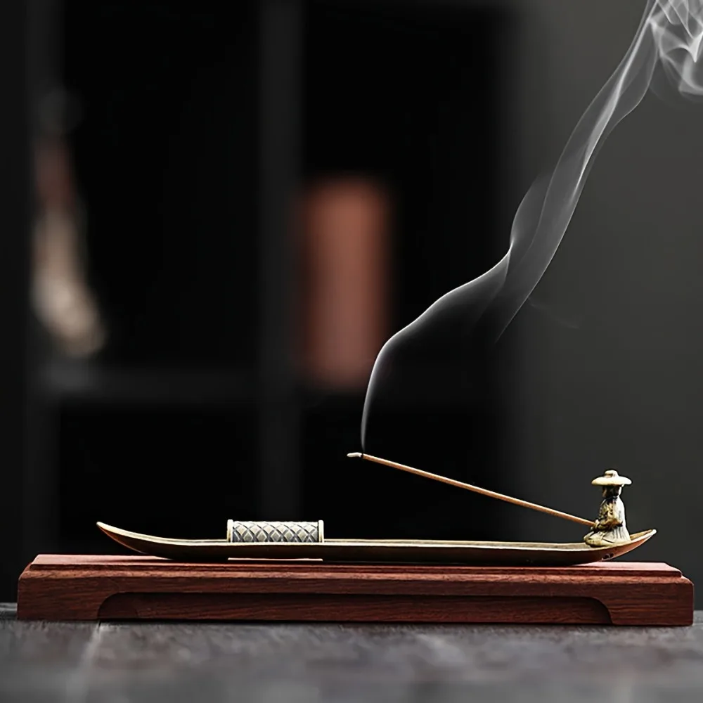 Creative Incense Holder Aromatherapy Ornament Incense Holder Boat Old Men Fishing Japanese Style Incense Stick Burner Home Decor