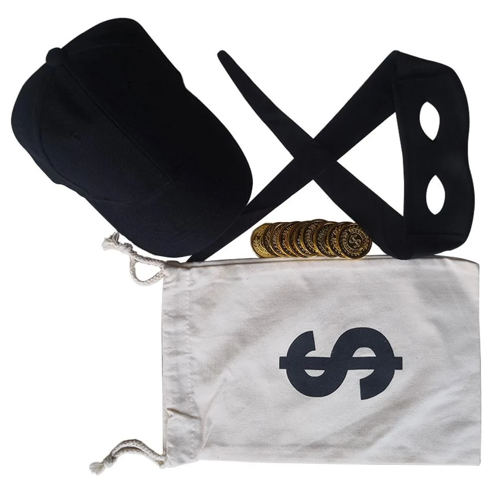 Movie Convict Thief Kids Cosplay Costume Bank Robber Disguise Accessories Set Halloween Carnival Party Clothes Role Play