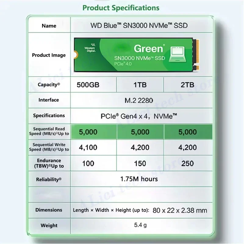 ALI shop - rezultati pretrage ... ... Green SN3000 500GB 1TB 2TB NVMe M.2 SSD PCIe 4.0 2280 5000MB/s SSD for PC Notebook PS5 Laptop Computer Mini ::: 2021 ::: :::