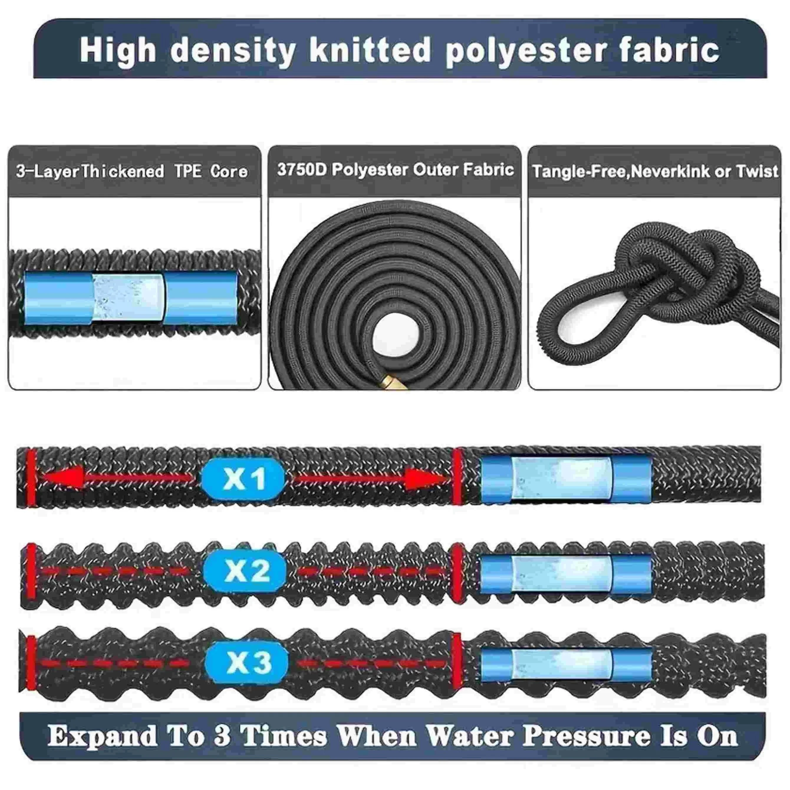 25/150ft Garden Water Hose Expandable Metal Connector High Pressure TPE Reel Magic Water Pipes for Garden Hose Farm Irrigation