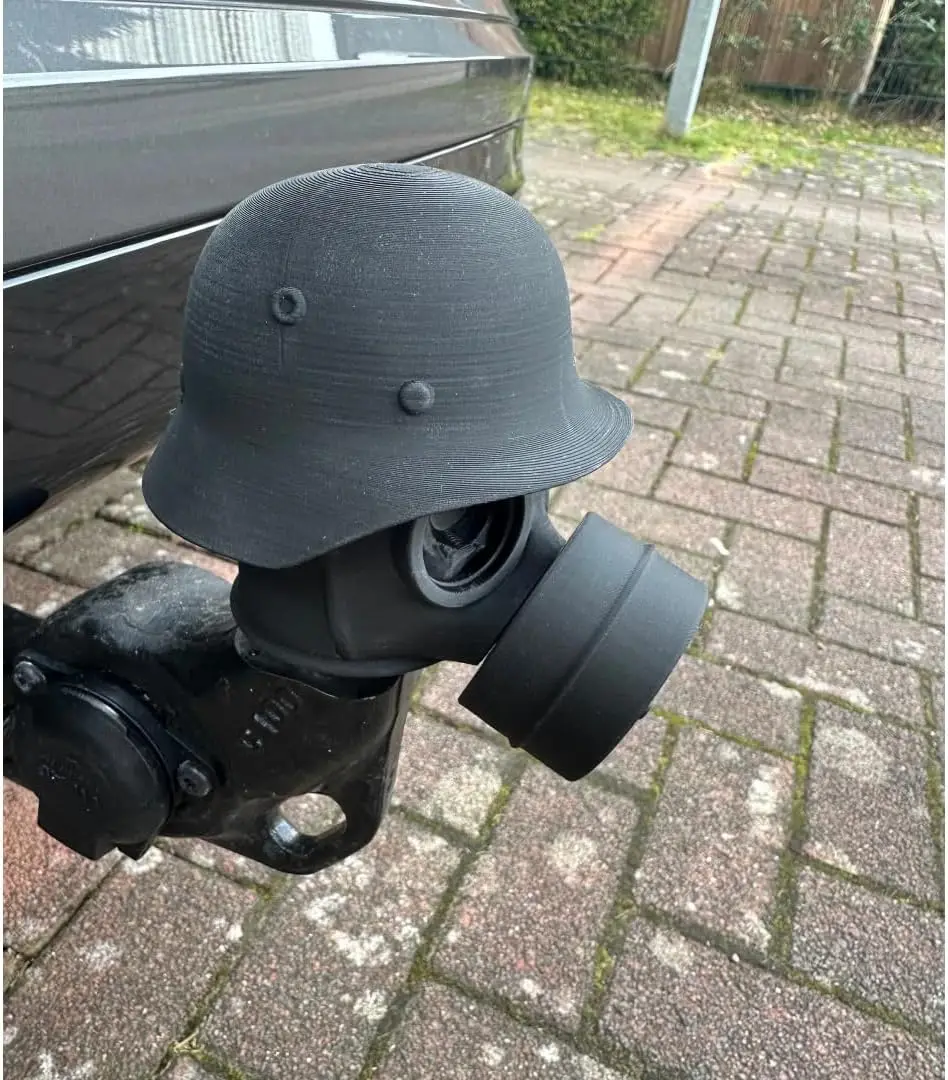 Trailer Hitch Cover With Steel Helmet And Gas Mask 3D Printed Trailer Hitch Ball Cover Prevent Receiver Tube From Rusting