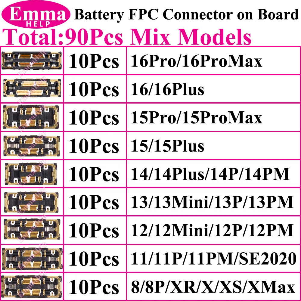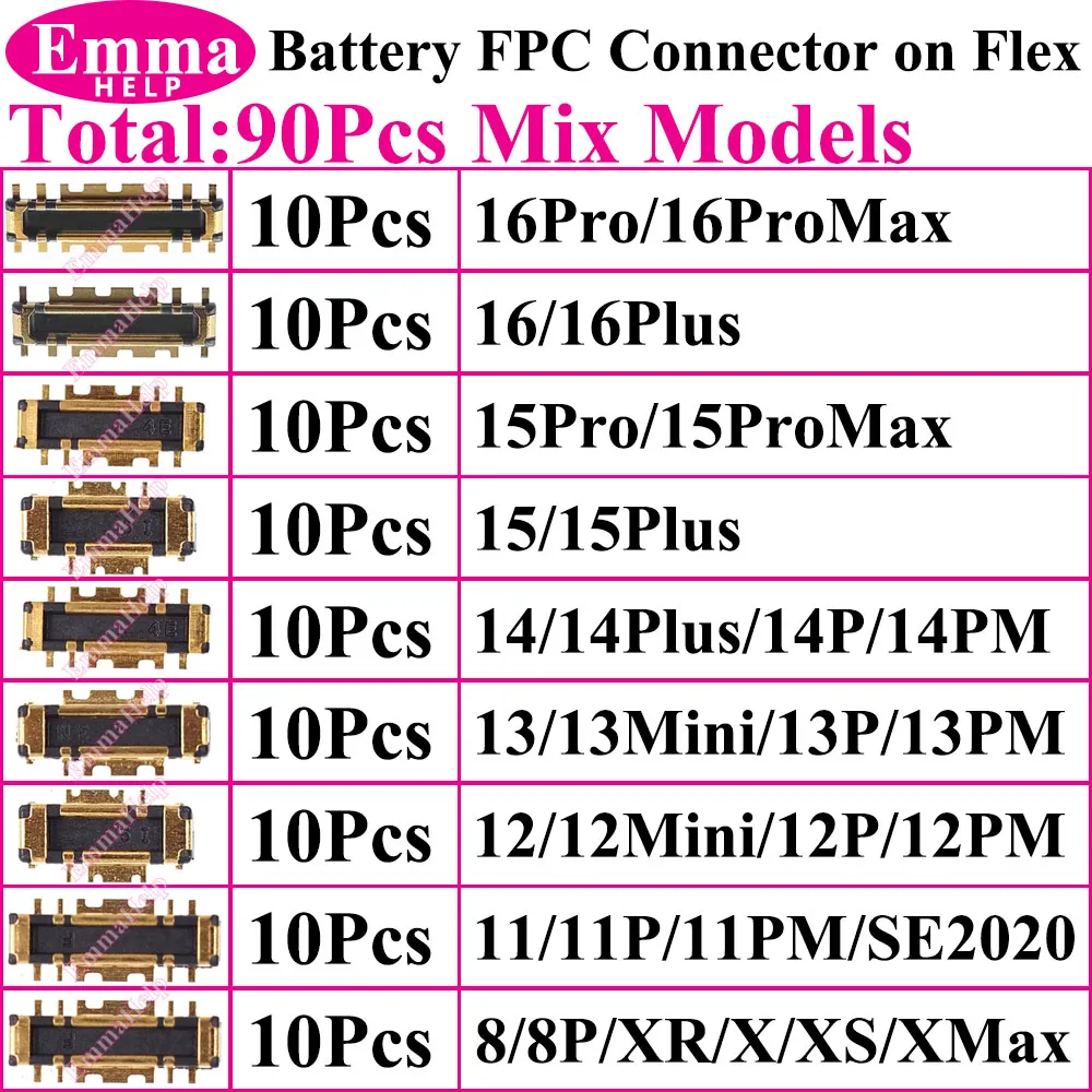 10Pcs FPC Battery Connector On Board For iPhone 15 16 13 12 Pro Max 14 Plus 11 XS XR X 8 Plus Inner Clip Plug Flex Cable On Flex
