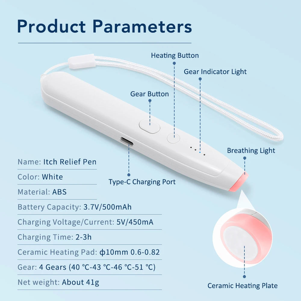 Portable Mosquito Insect Bite Relieve Itching Pen Rechargeable Bug Insect Bite Itch Relief Heat Pen for Camping Outdoor Children