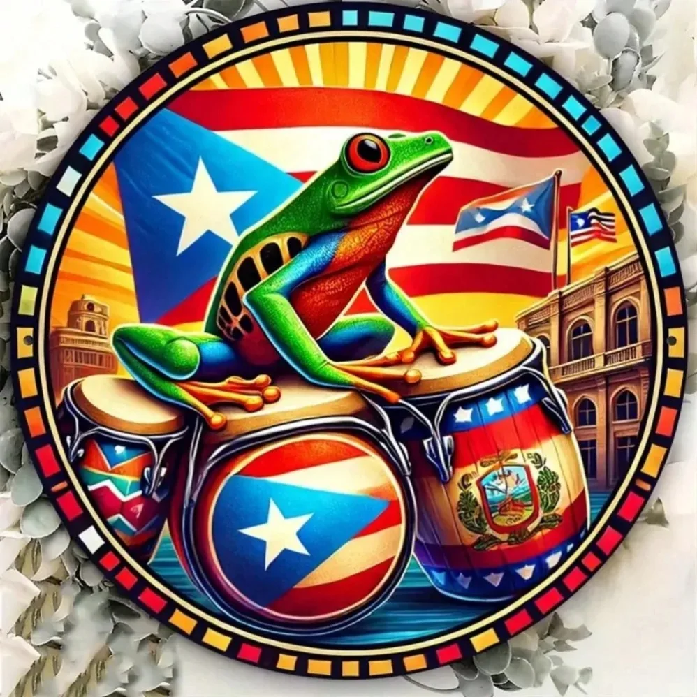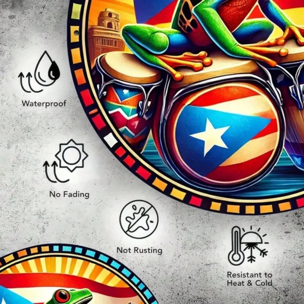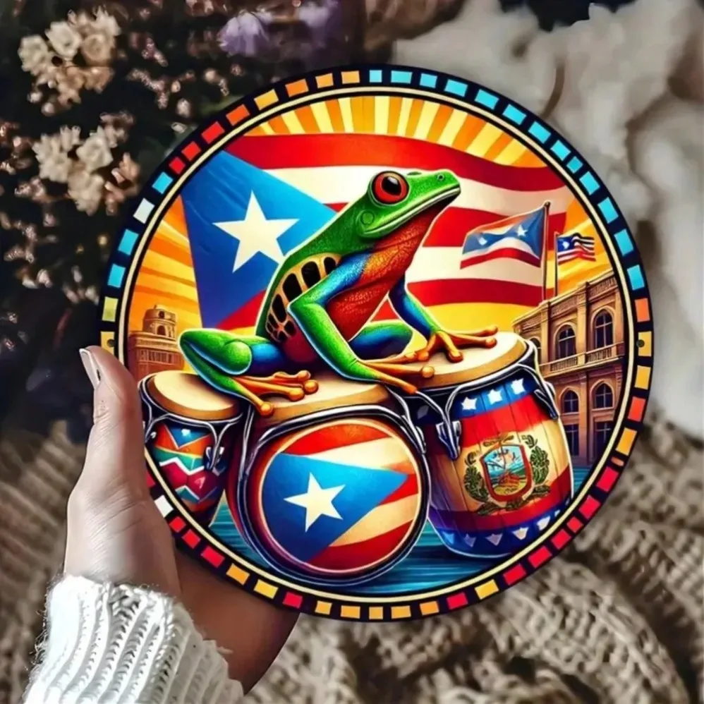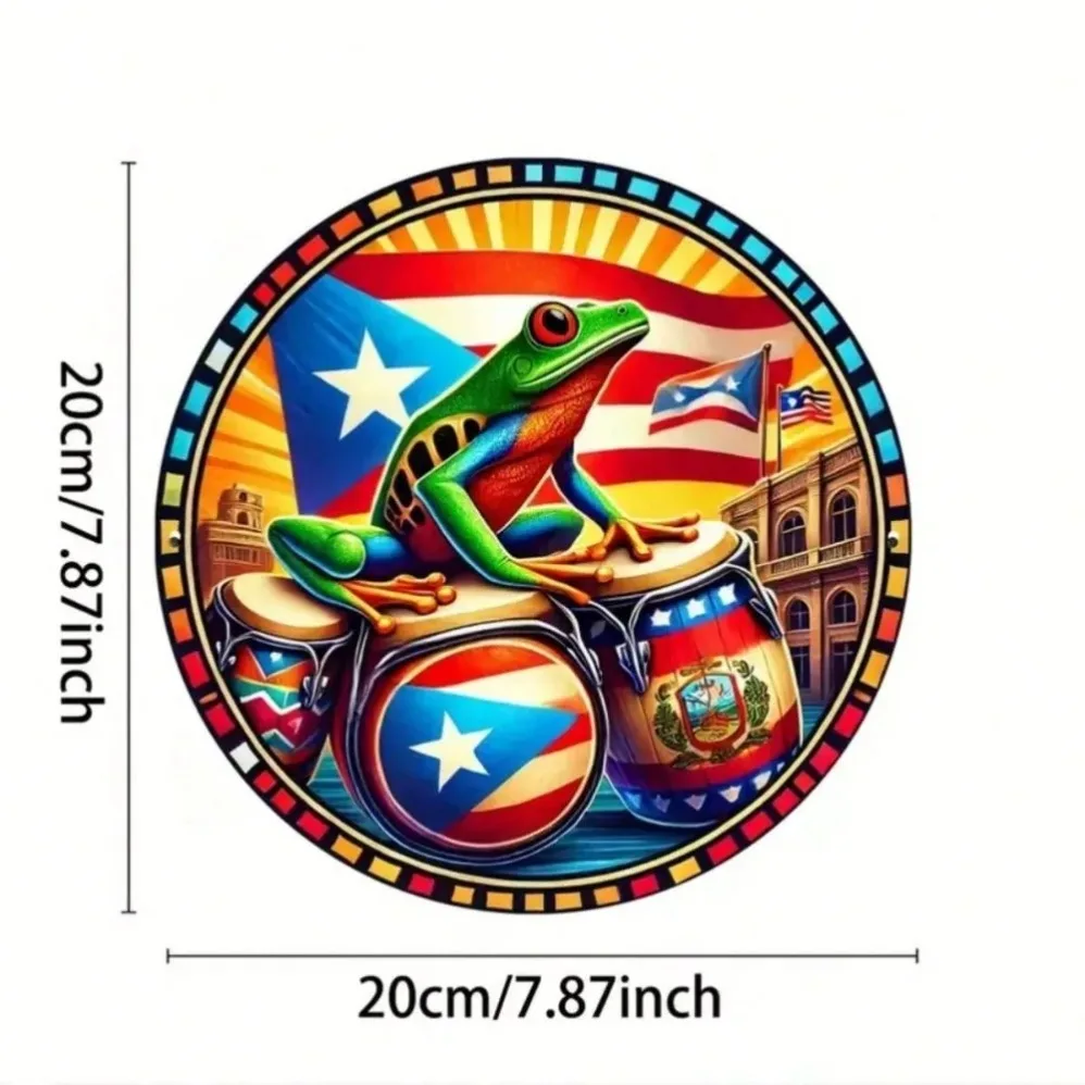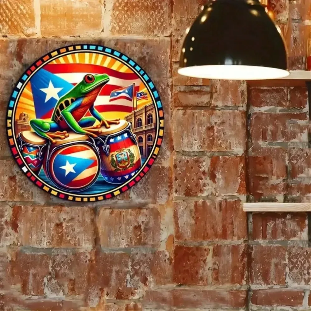 ALI shop - rezultati pretrage ... ... Round Metal Wall Art Decor! Puerto Rican Flag & Frog Design – Waterproof, Fade-Resistant Indoor/Outdoor Decor ::: 2021 ::: :::