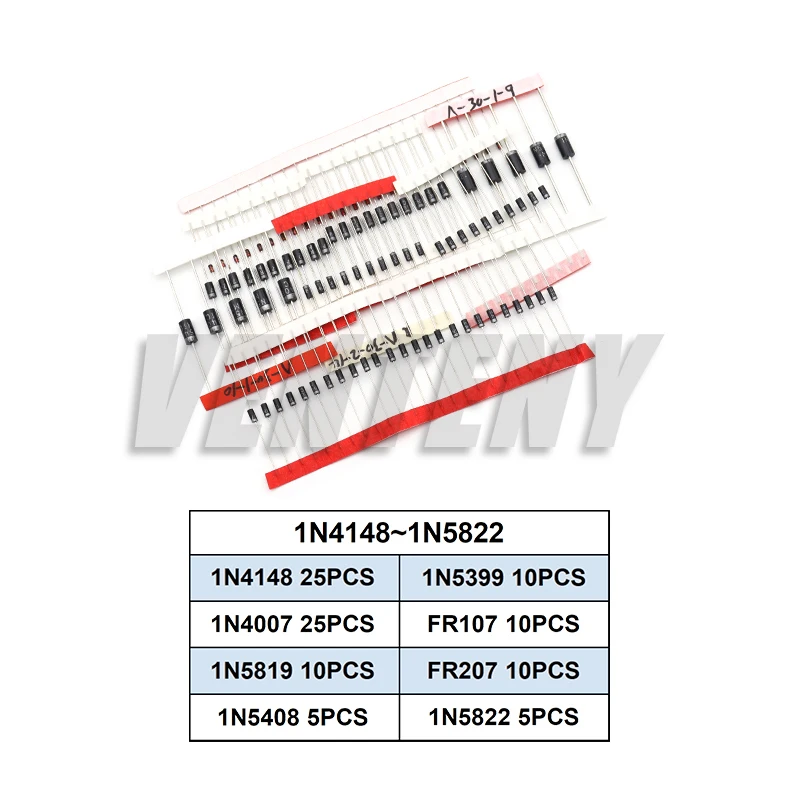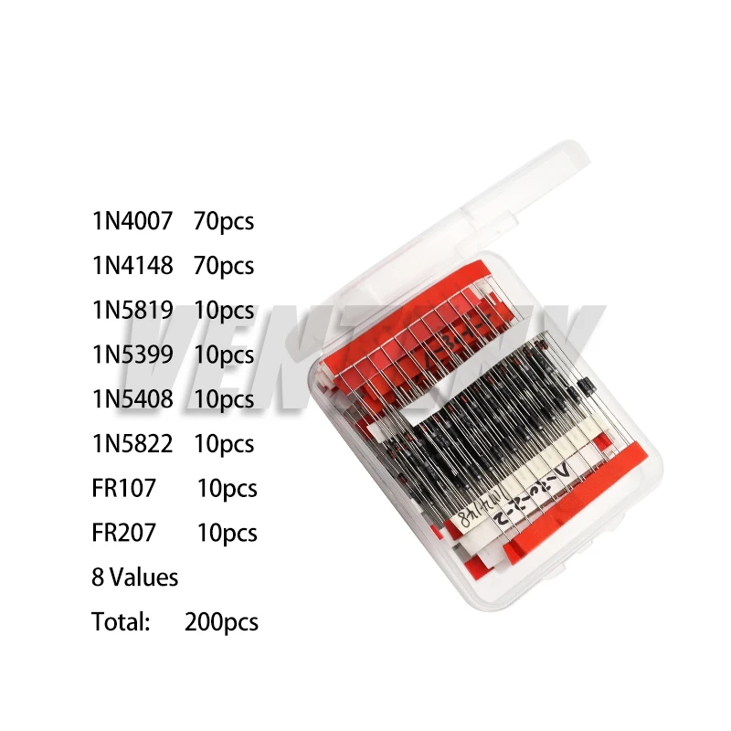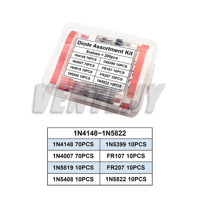 Diode Schottky Diode Kit 100/200PCS Rectifier 1N5408 1N5819 1N4007 1N4148 1N5822 1N4001 1N4004 1N5404 FR107 FR207 Fast Switching