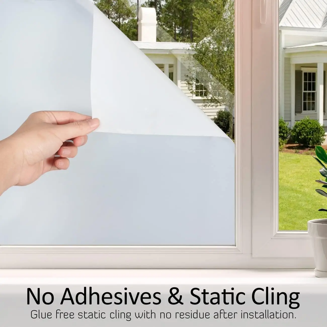 Window Privacy Film Non-Adhesive Frosted Glass Window Film for Bathroom Static Cling Heat Blocking Stickers for Home Matte White
