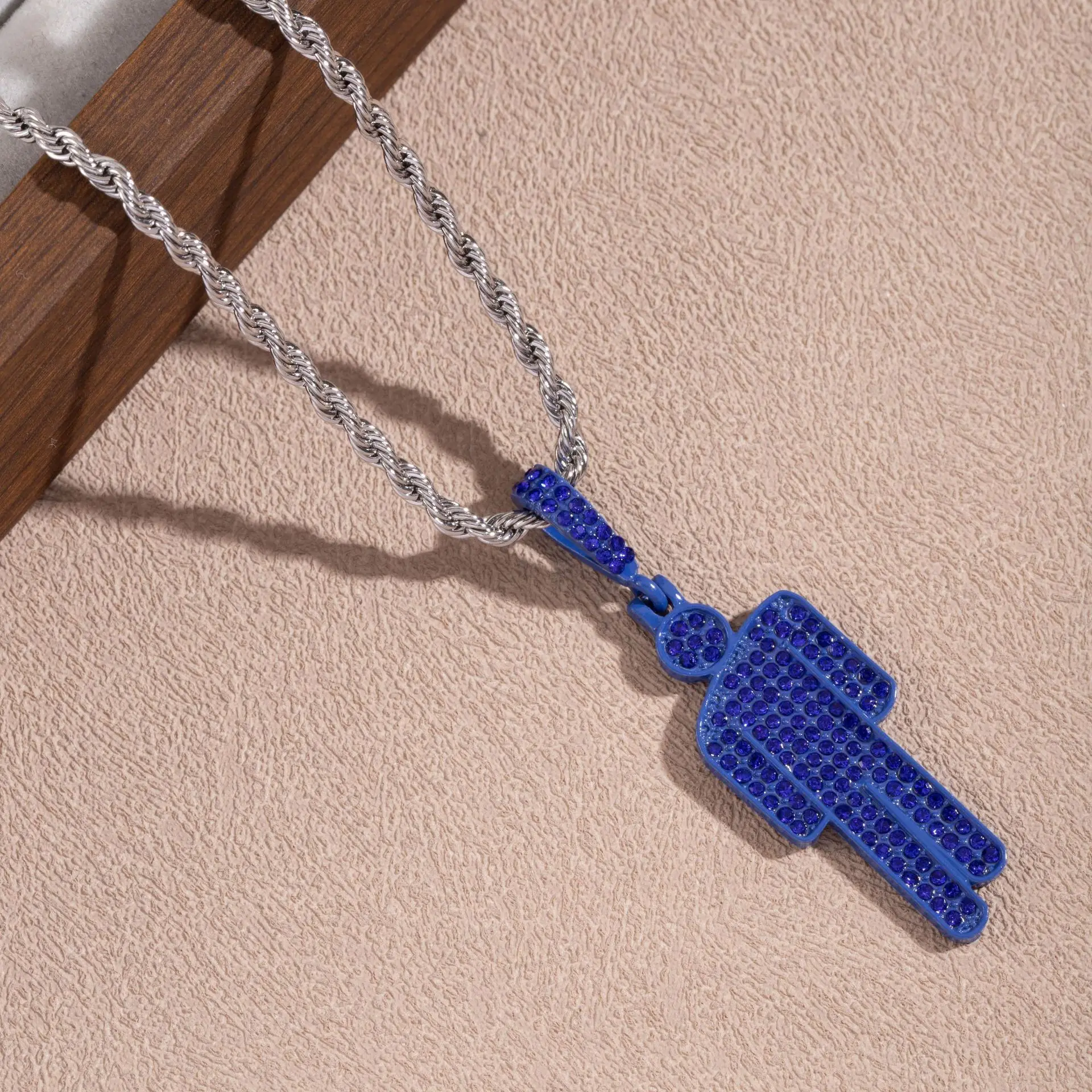 Men Fashionable Luxury Cartoon Rhinestone Pendant Necklace Trendy Hip Hop Uni Pendants Wholesale Gemstone Lock Chain Women