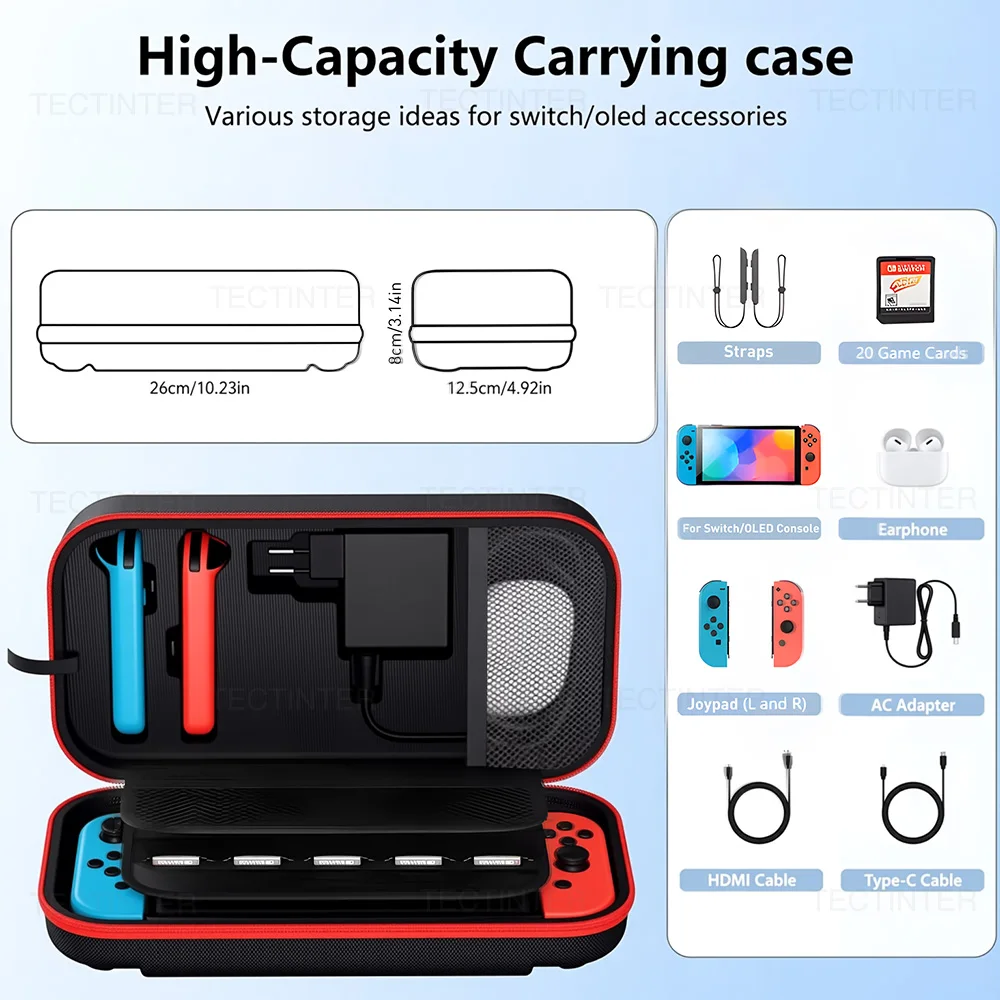 Large Storage Bag for Switch & OLED Portable Carrying Protective Case with 20 Game Slots Travel Bag for Joypad NS Accessories