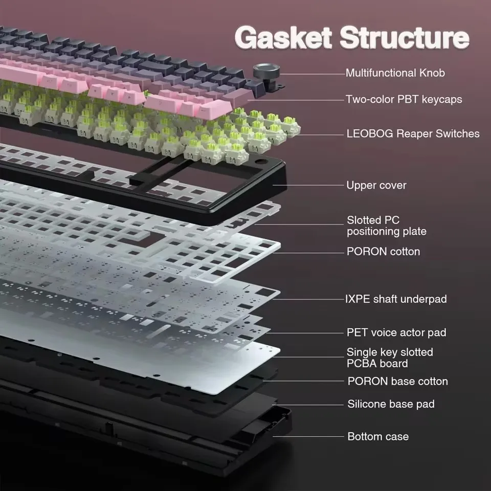 AULA F99PRO Gaming Mechanical Keyboard 99 Key Three Mode Wireless Hot Swappable Gasket Structure Custom Keyboard with Media Knob