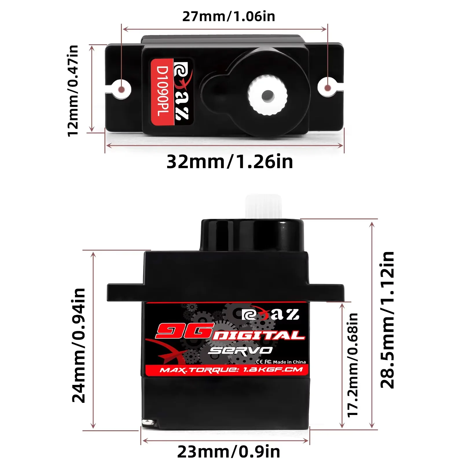 RCXAZ 9g Plastic/Iron/Copper Gear 1.6KG Digital Servo for RC Fixed-Wing Airplane Robot Car Boat Duct Plane Small Servo Motor