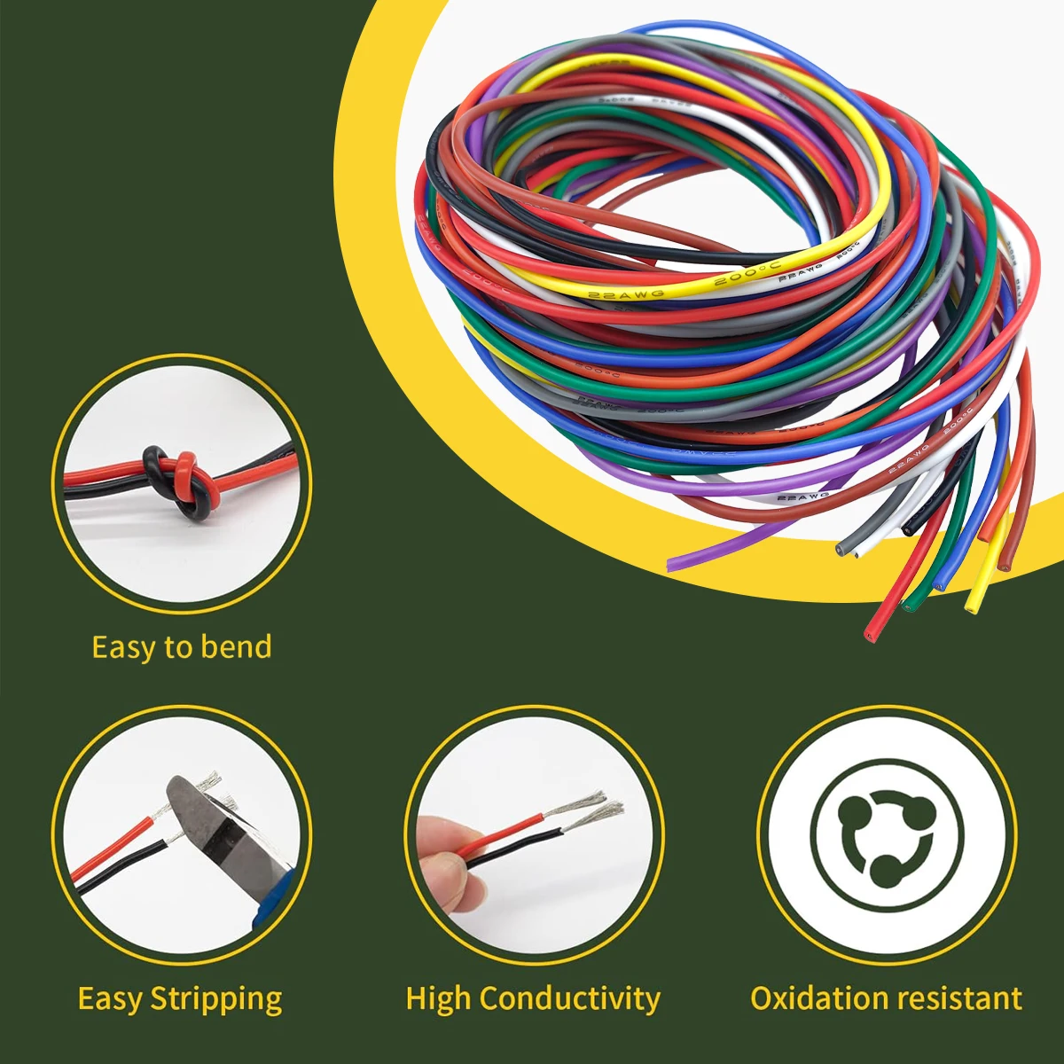 10 Colors 16-18-20-22-24-26-28-30 Gauge Silicone Electrical Wire 10 ft each Color 22 AWG Stranded Tinned Copper Hookup Wire Kit