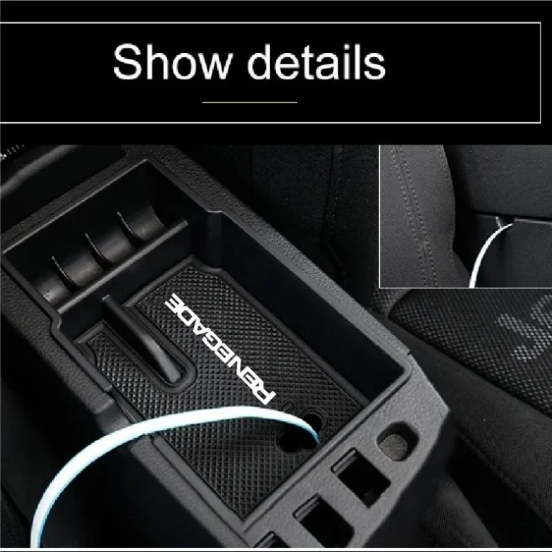 For Jeep Renegade 2015~2017 2018 2019 2020 2021 2022 2023 2024 Car Console Armrest Hidden Black Storage Box Interior Accessorie