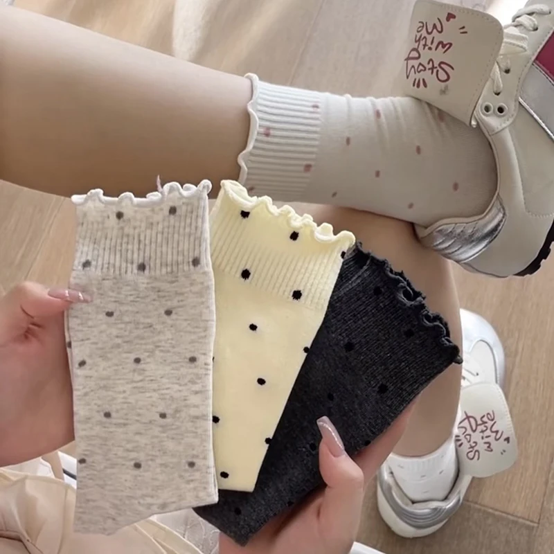 5/10 Pairs Women Wave Edged Polka Dot Mid Tube Socks Spring Summer Thin Sweat Absorbing Breathable Ballet Style Casual Socks
