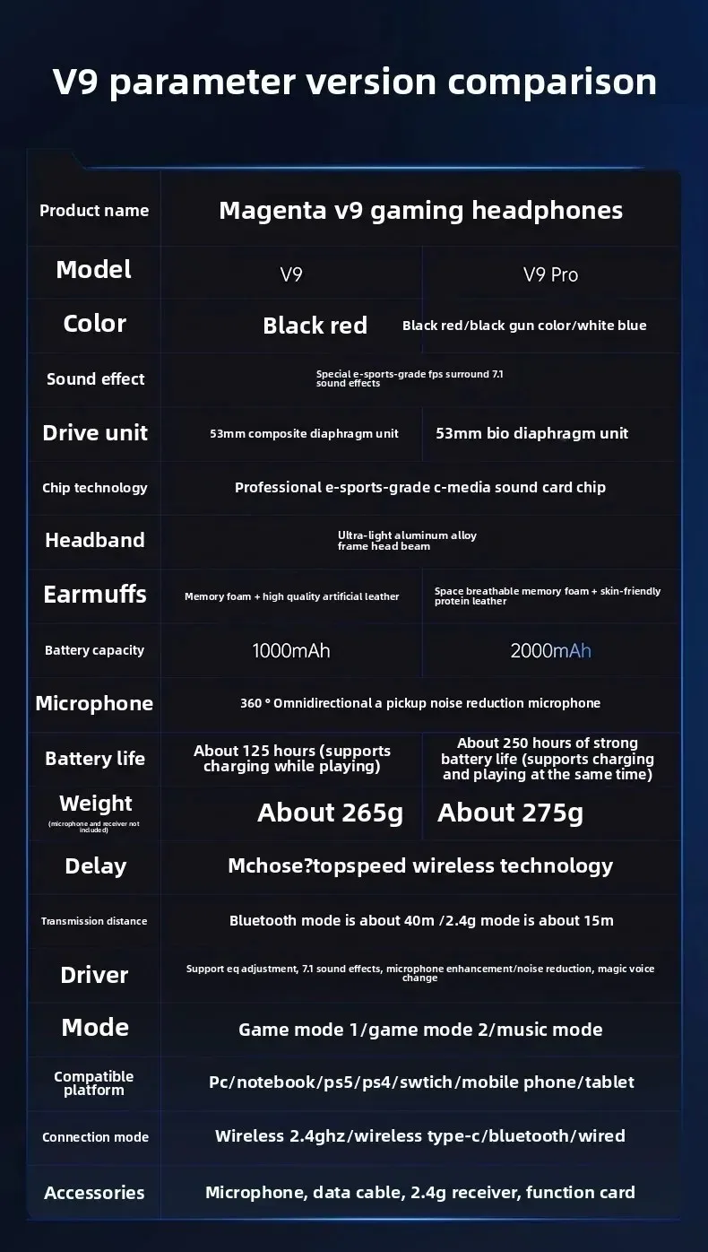 Original MCHOSE V9 PRO Music Esports Gaming Headphones 3-mode Wireless Noise Reduction Mic Customized Head-mounted