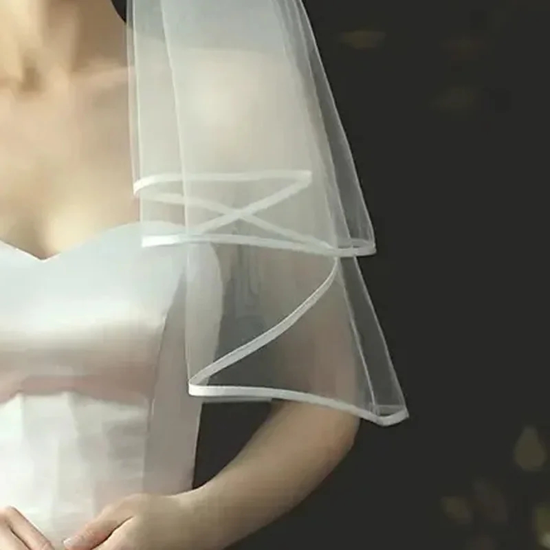 Elegant Ribbon Edge Bridal Veil with Comb Shoulder Elbow Length Short Wedding Veil Marriage Accessories