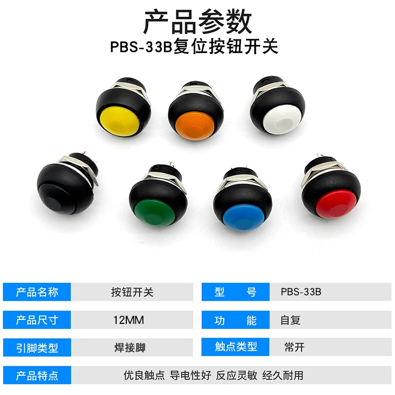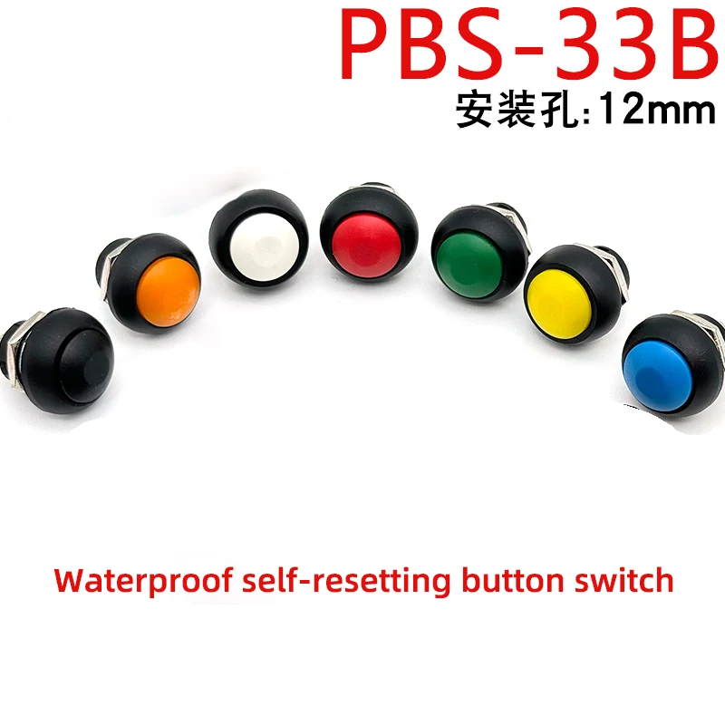 10PCS PBS-33B mini switch power button Waterproof self-resetting button switch circular lock-free button 12mm buttons switch