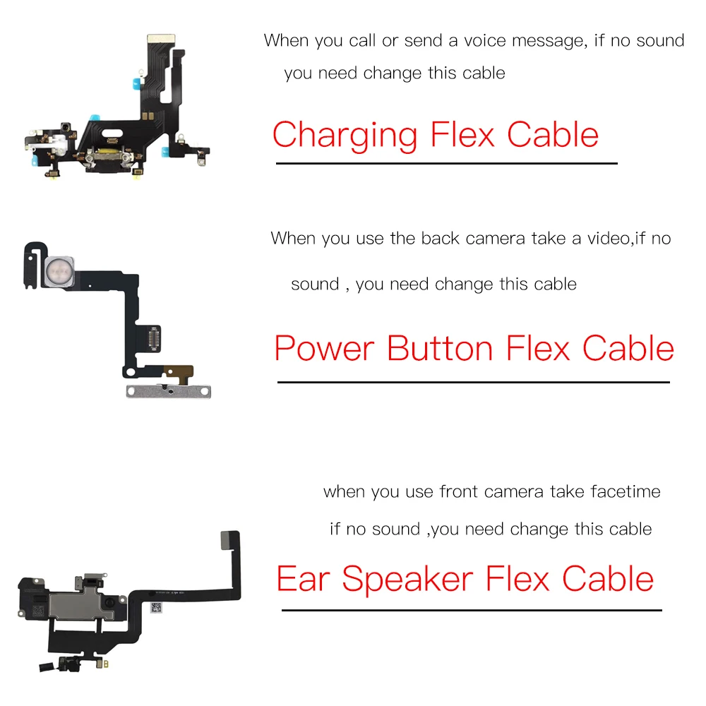 Replacement Microphone For iPhone 11 Ear Speaker Charing Dock Port Power Button With Flex Cable