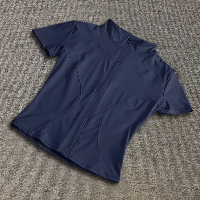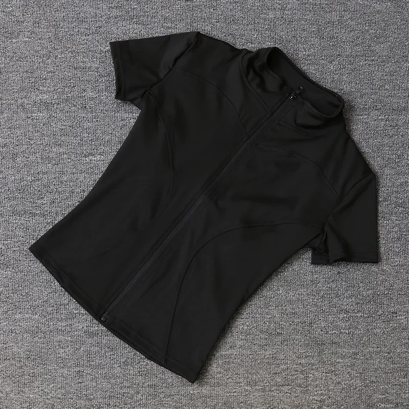 Summer High Quality Waist Slimming Training Tops Women's Quick-drying Tight Stand Collar Full Zipper Short Sleeves Yoga shirts