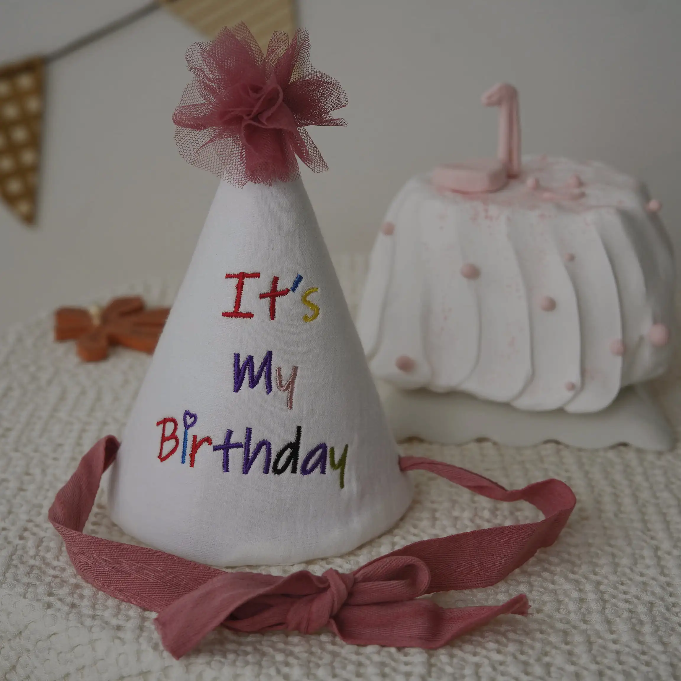 Kids Birthday Party Hat - Safe Soft Photo Prop Cap for Xmas Baby Shower, Adjustable Toddler Headband