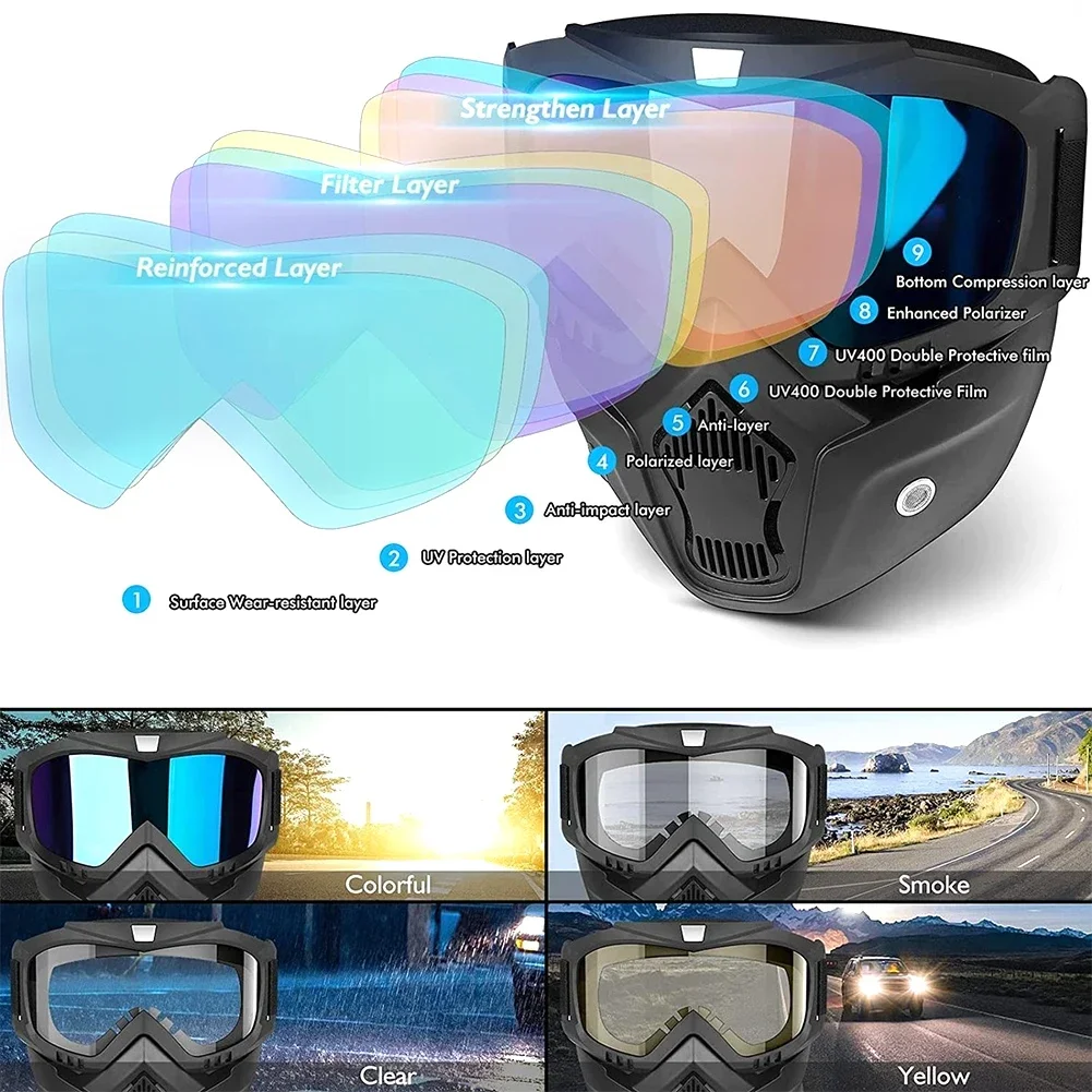 UV400 Motorcycle Sunglasses Mask - Windproof Cycling Goggles with Mouthpiece for Motocross Ski & Bicycle Riding Protection