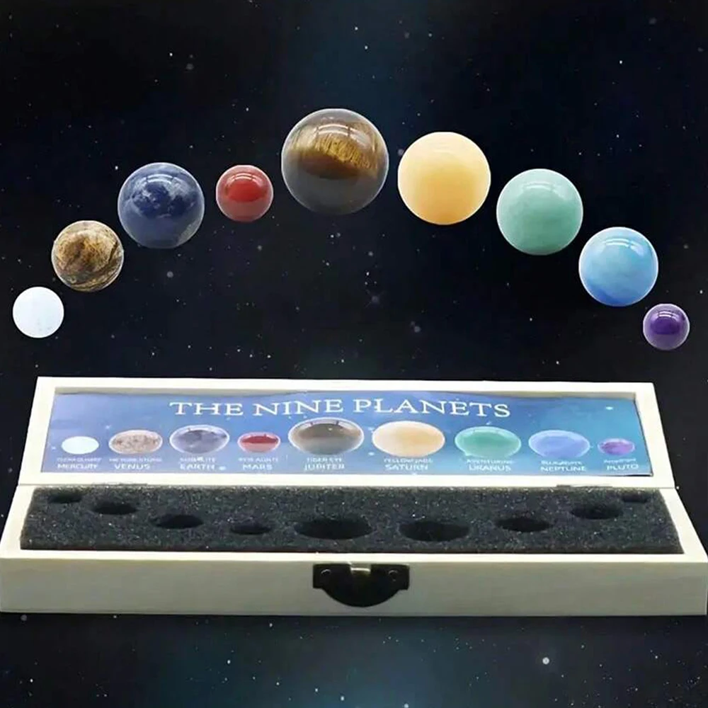Solar System Natural Crystal Gemstones Set 9 Planets Sphere Ball Stone Galaxy Model Ornaments Gift Home Office Decor
