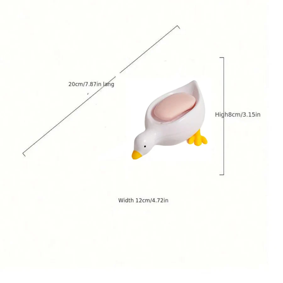 1Pc White Duck-Shaped Soap Rack, Plastic Material, Suitable for Kitchen and Bathroom Countertop Storage Box, Non-Slip Drain Soap Dish Container Bathroom Accessories
