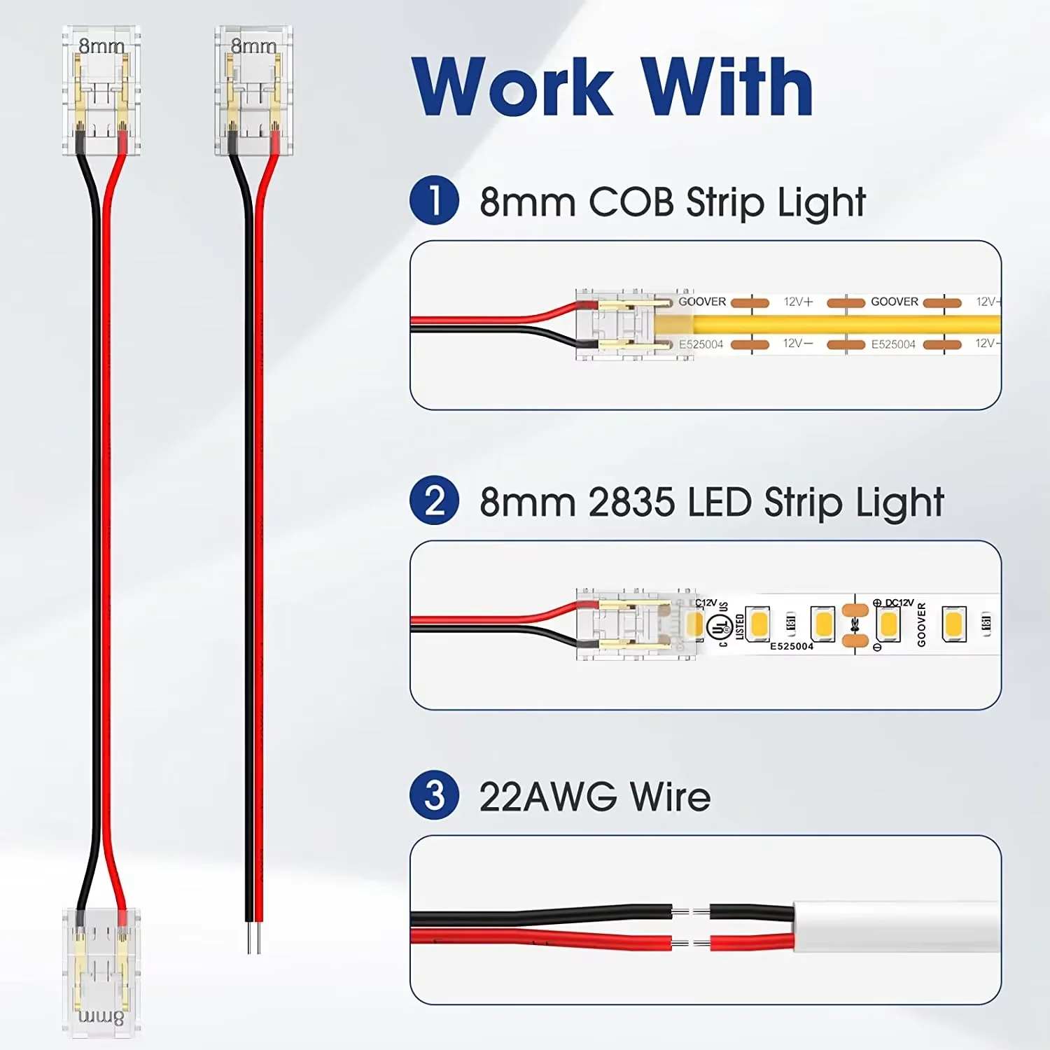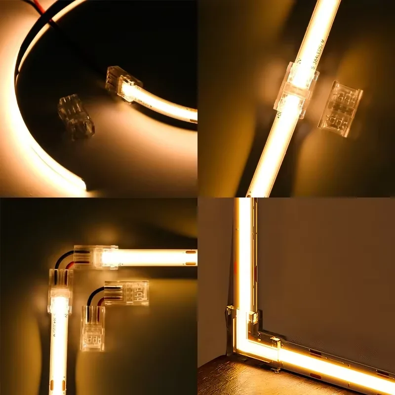 COB Connector 8mm 5-24v 2pin LED Strip Terminal Extension Wire LED Connectors Fixed Clips For Pin No Dark Area Single Dual End
