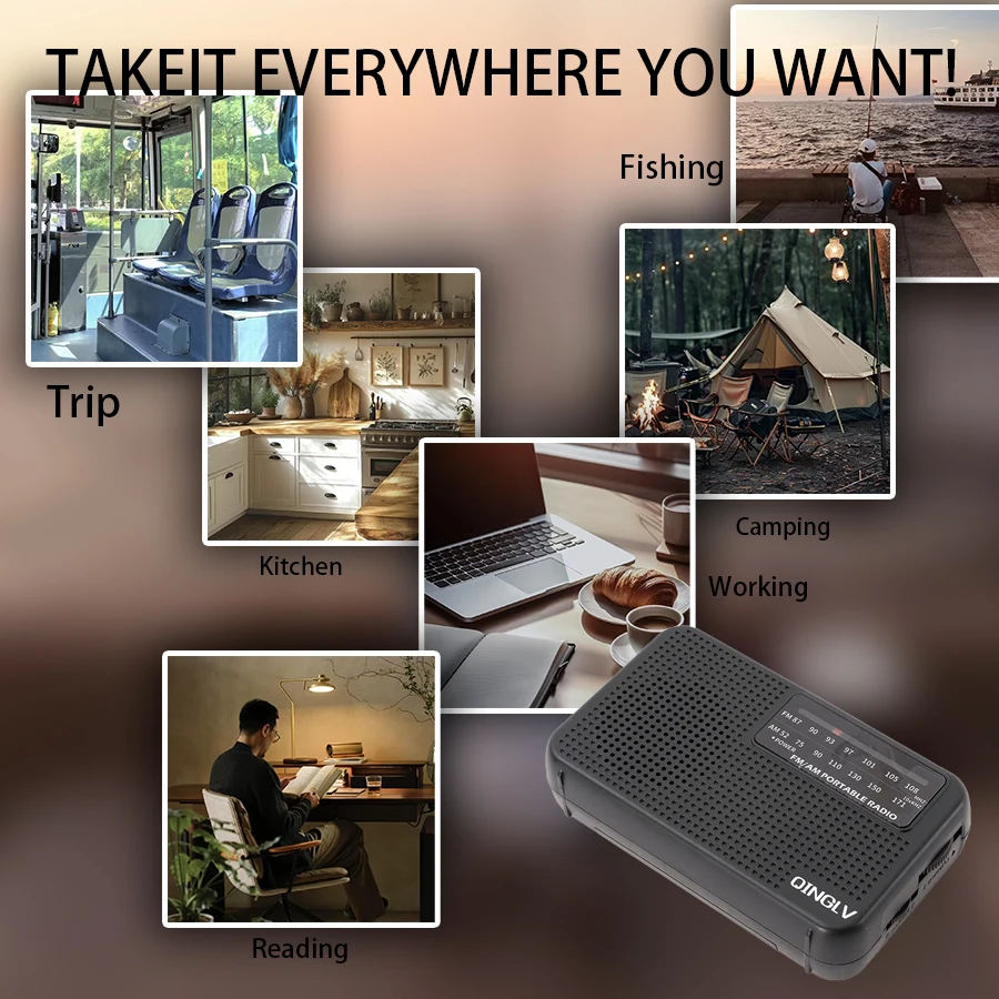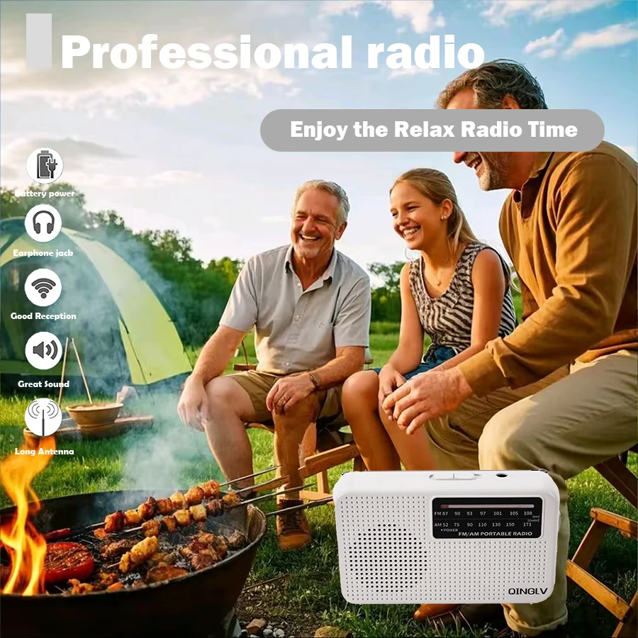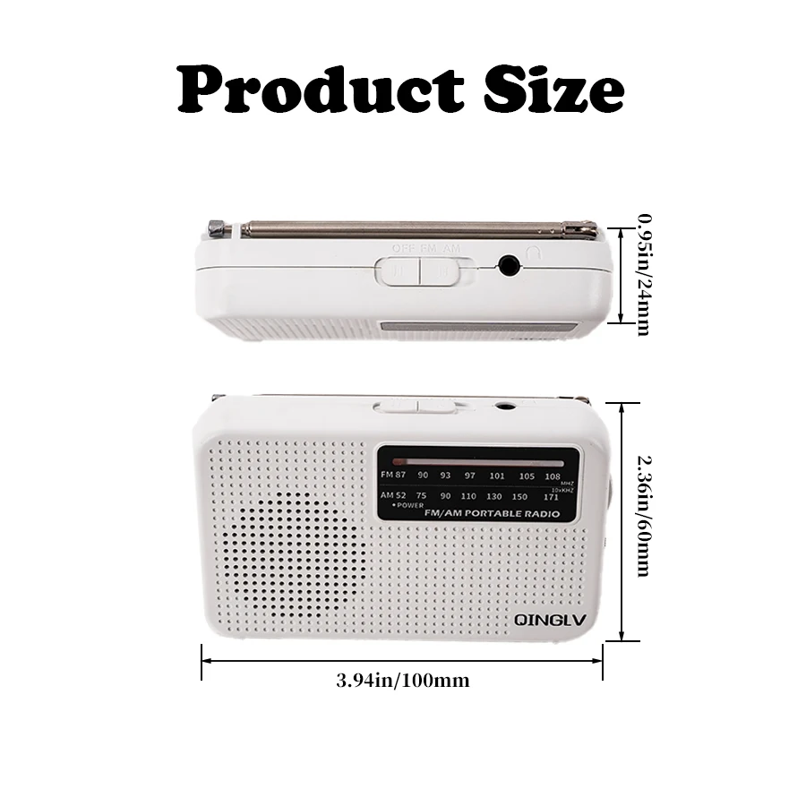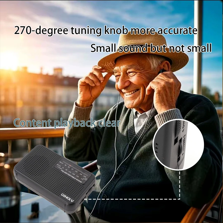 mini FM/AM two-band radio, 3.5 headphone jack, 1W speaker loud sound, 180-degreehigh-performance antenna, a good friend for home