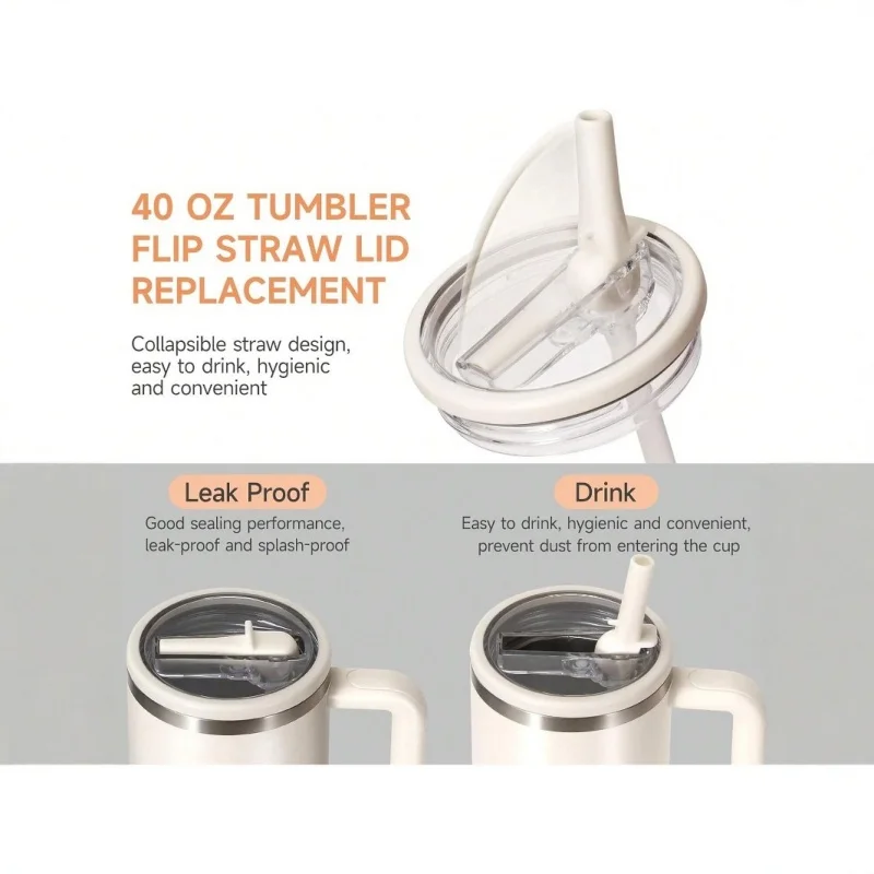 40oz Flip Straw Leak Proof Lid for 2.0 Tumbler Lid Replacement for Stanley Cup Accessories Straw Cover Cleaning Brush with Straw