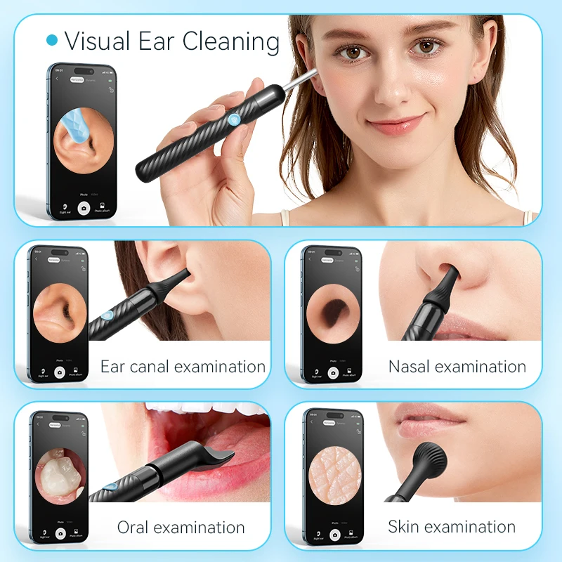 Wireless Ear Wax Removal With Camera Rechargeable Ear Cleaner 8 Megapixels Ear Check Camera with 6 Pcs Ear Spoon Set Canal Clean