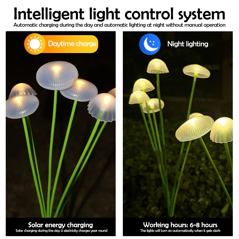 1/2/3/4PCS LED Solar Outdoor Jellyfish Swaying Lights Waterproof Garden RGB Mushroom Lawns Lamp for Patio Yard Garden Decoration