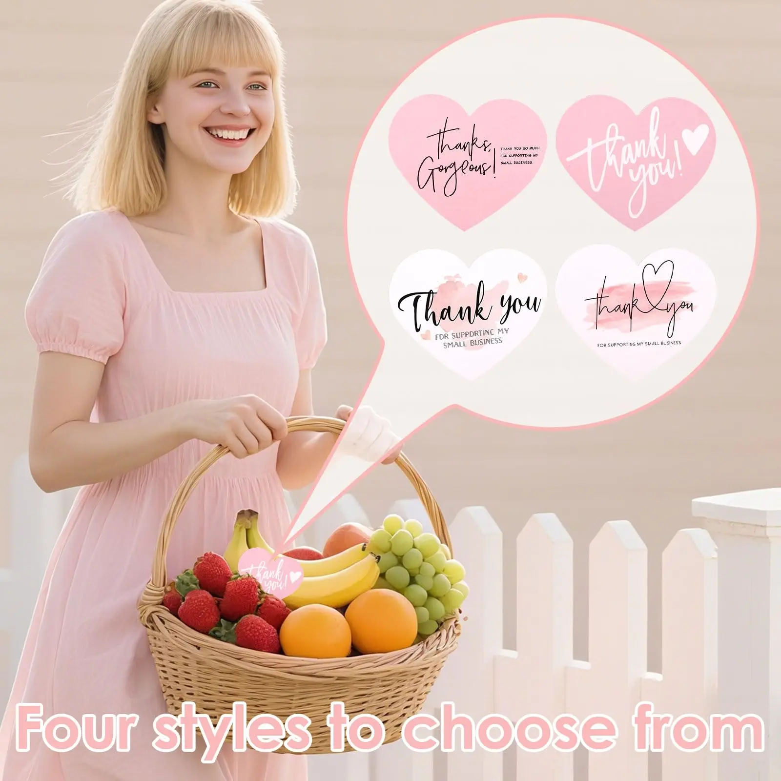 50/100PCS Thank You Cards for Support My Small Business Paper Cards Pink Love Heart Shaped Thank You Tags Gift Greeting Card Set