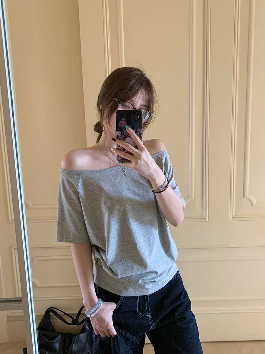 T-shirts Women Solid Simple Summer Casual Cleanfit Short Sleeve All-match Young Girls Streetwear Y2k Top Aesthetic Clothes Ins