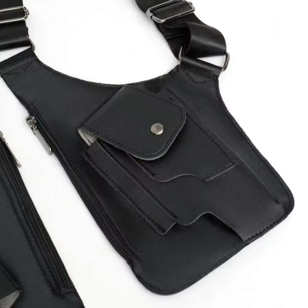 Double Shoulder Strap Multi-Pocket Outdoor Anti-Theft Tactical Fishing Bag Waterproof PU Multi-Purpose Men's Crossbody Bags