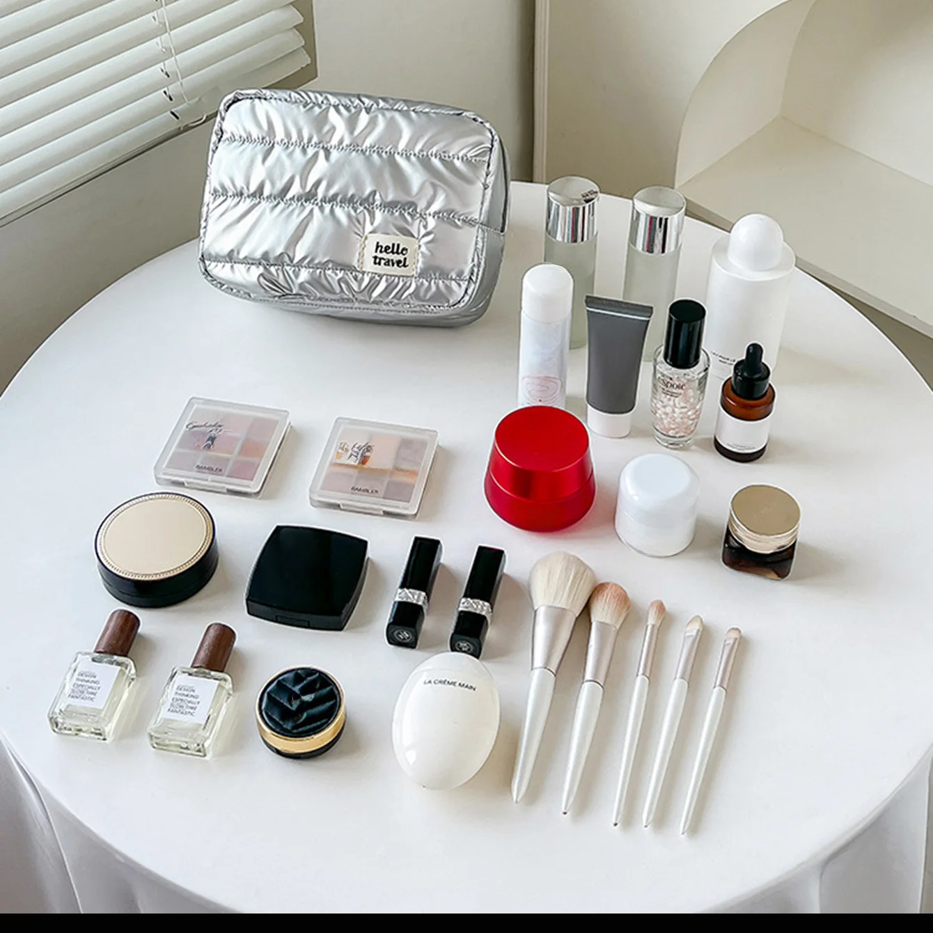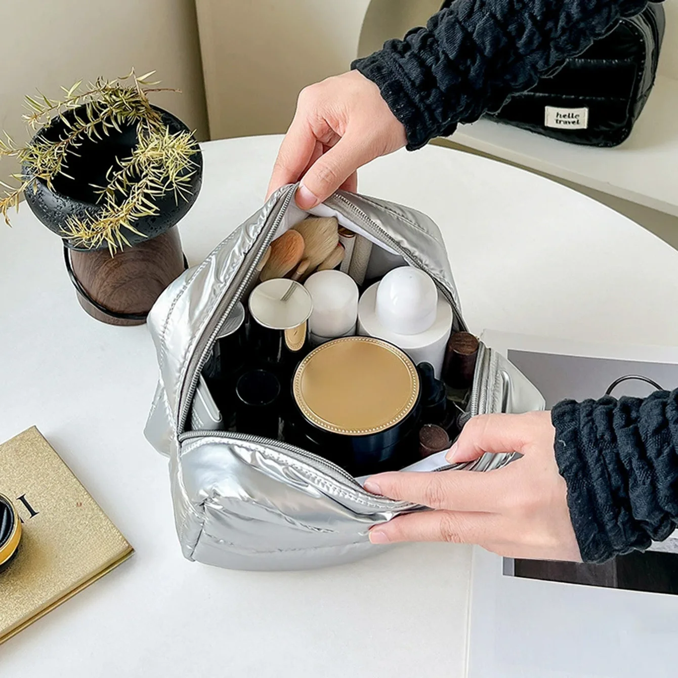 Puffer Makeup Bag Travel Organizer, Lightweight Cosmetic Storage Bag with Zipper, Portable Toiletry Bag for Women