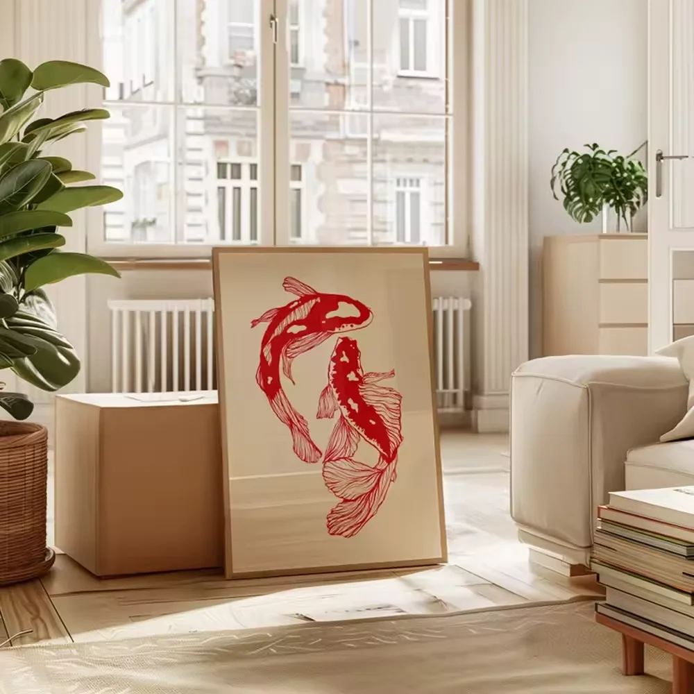 1 poster wall decoration poster wall art vintage red koi poster canvas painting wall art living room office decoration frameless