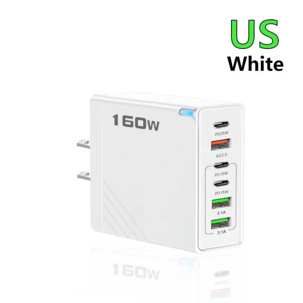 160W Multi Ports USB Type C Charger Phone Charger Adapter For iPhone Samsung Xiaomi EU/US/UK Plug USB Wall Charger