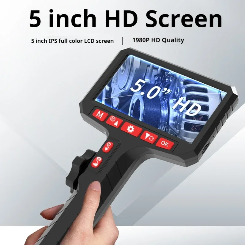 3.9mm 5 million pixels HD Two-Way Rotary 360° Industrial Piping Endoscope Camera Borescope Inspection with 5.0 Inch