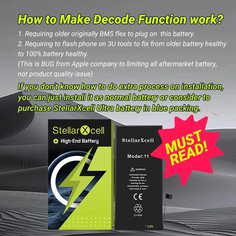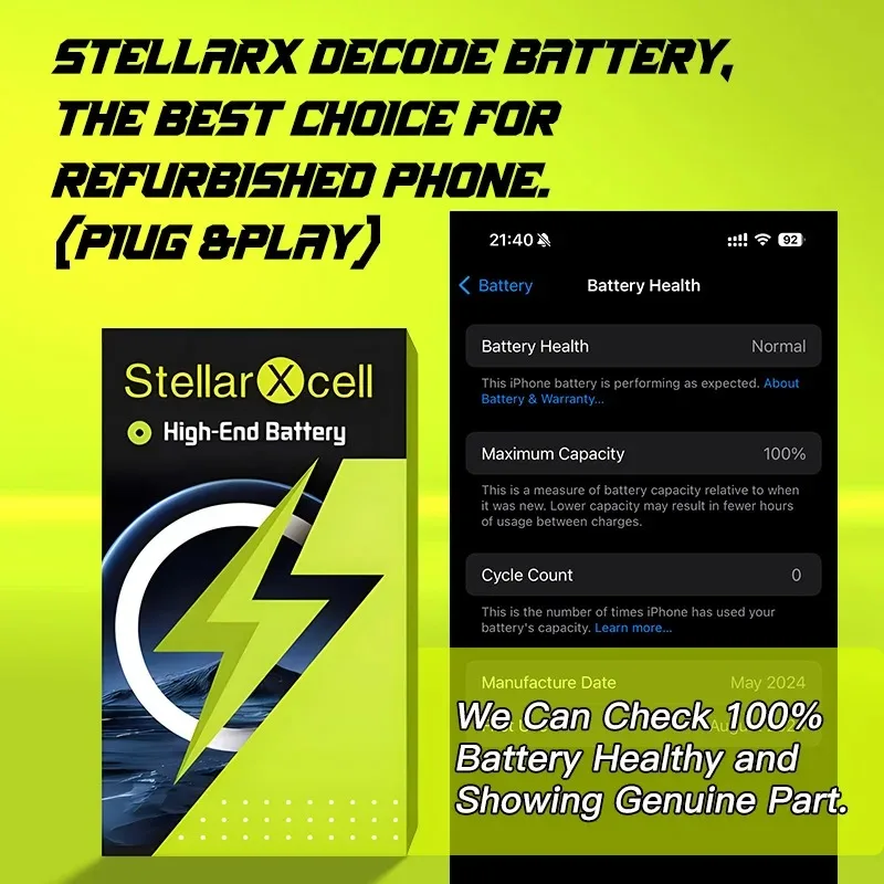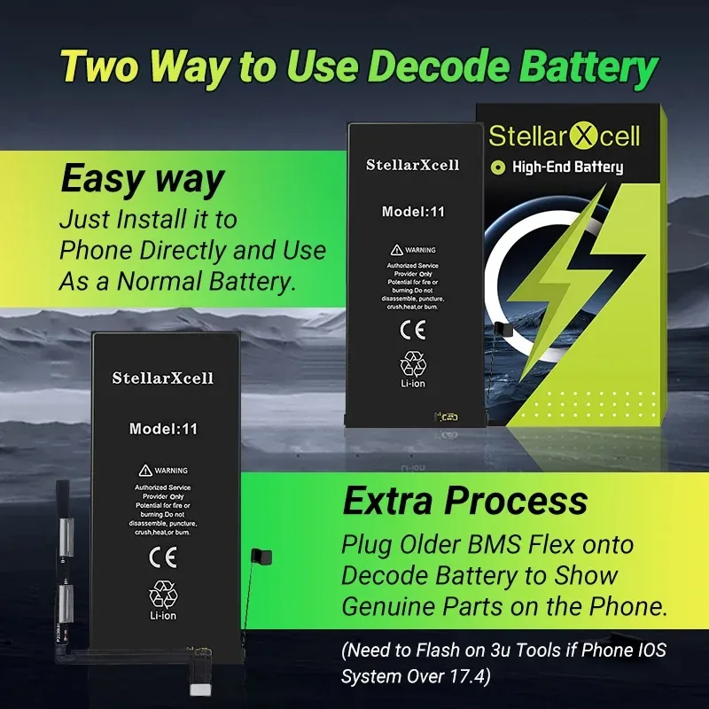 StellarXcell Decode Battery No need spot-weld Show 100% battery healthy for iPhone iPhone 11 12 13 14 15 Pro Max Mini Plus Xs