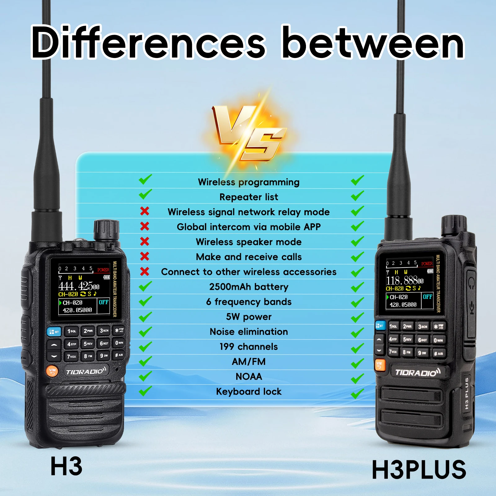 TIDRADIO H3 Plus Radio Long Range Walike Talkie Upgraded Bluetooth Features Air Band Wireless Programming Multilingual