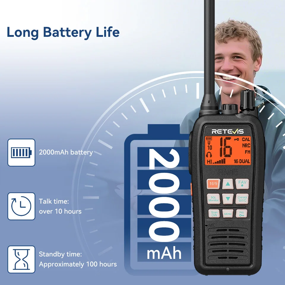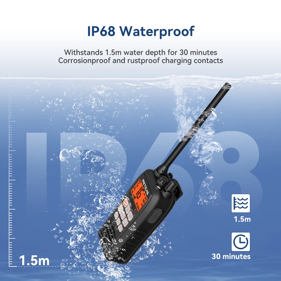 Retevis RM15 Marine Radio Transceiver VHF IP68 Waterproof Floating Radio handheld Portable Long Range Walkie Talkies for Boating